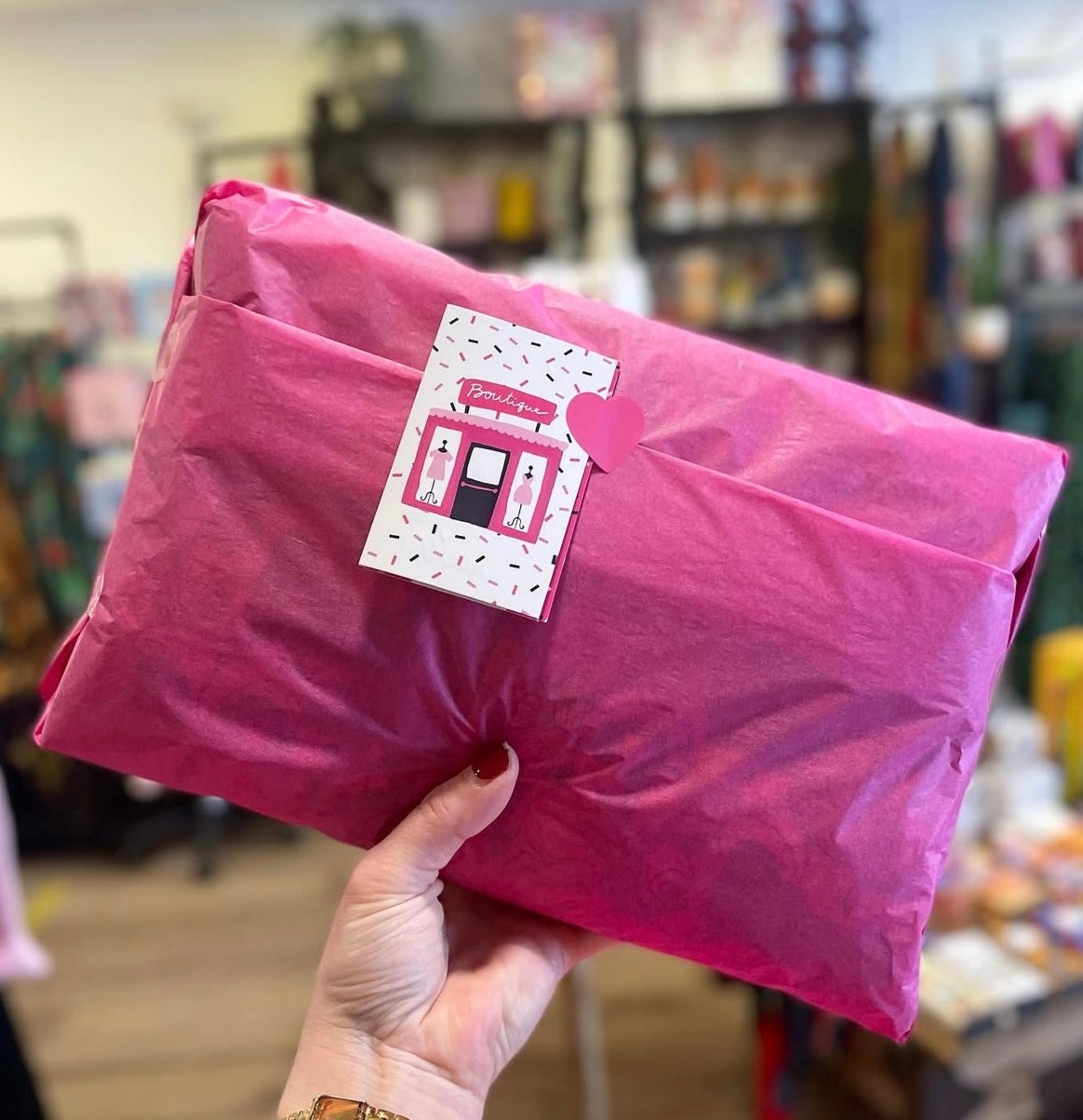 Every online order is prepared in our brick & mortar store in De Courcy's Arcade. Each item will be handwrapped in our iconic hot pink tissue paper where every care is taken to make gifting as seamless as possible.