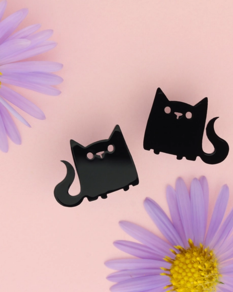 Black Sitting Cat Stud Earrings