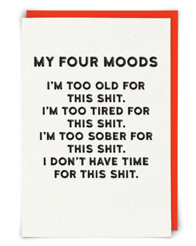 Looking for the perfect card for that moody cow in your life? Well look no further than the Four Moods Card by Redback.