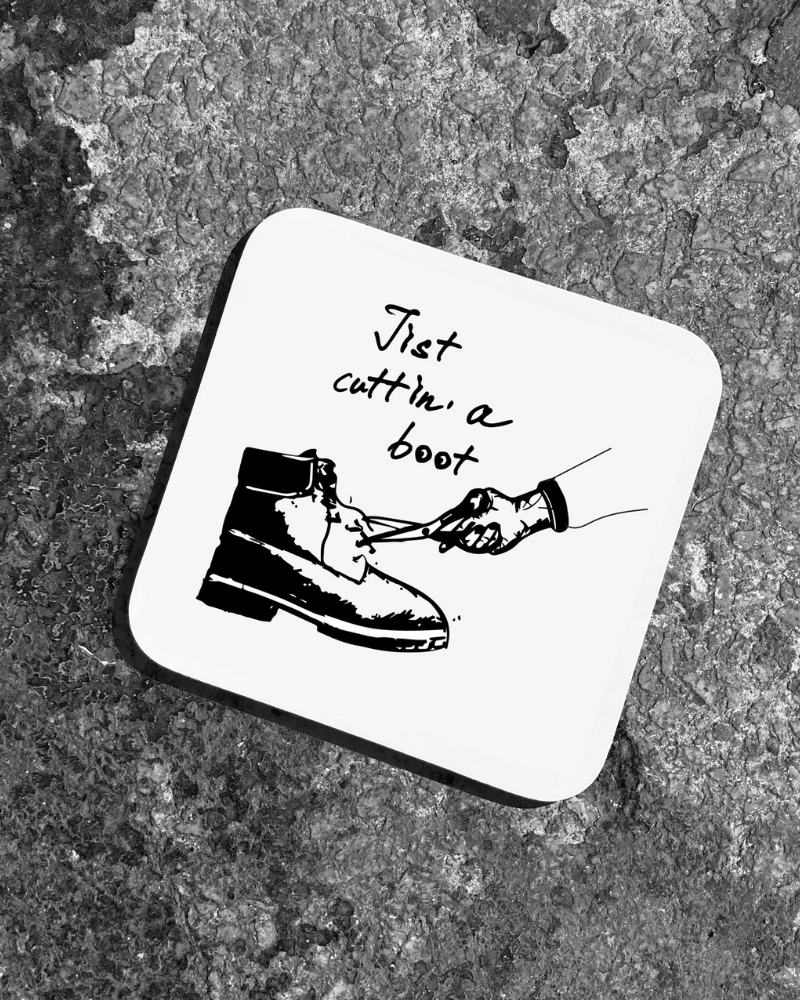 Add a splash of Scottish humour to your table with the Cuttin' A Boot Scottish Coaster. Featuring a playful illustration of a boot being cut, this witty design is a clever play on words that protects your surfaces while sparking smiles. Perfect for anyone who loves a bit of cheeky fun with their drinks.