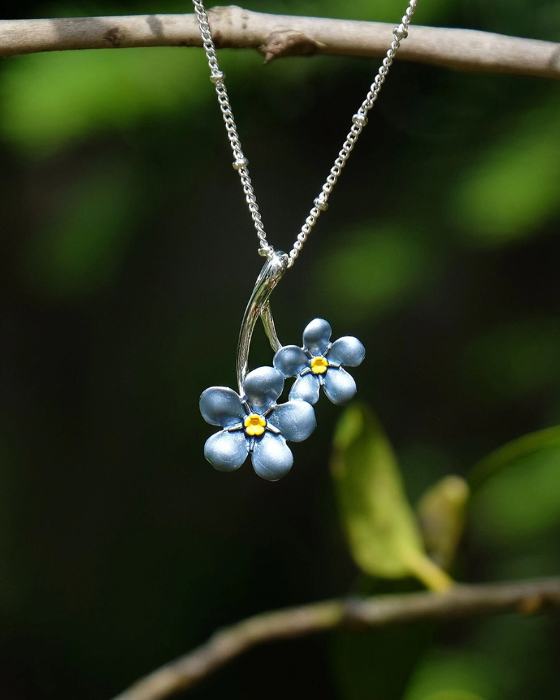 Indulge in the beauty of our Forget Me Not Double Flower Pendant Necklace. Perfect as a gift, this necklace features delicate forget me not flowers, capturing the essence of love and remembrance. Elevate any outfit today.