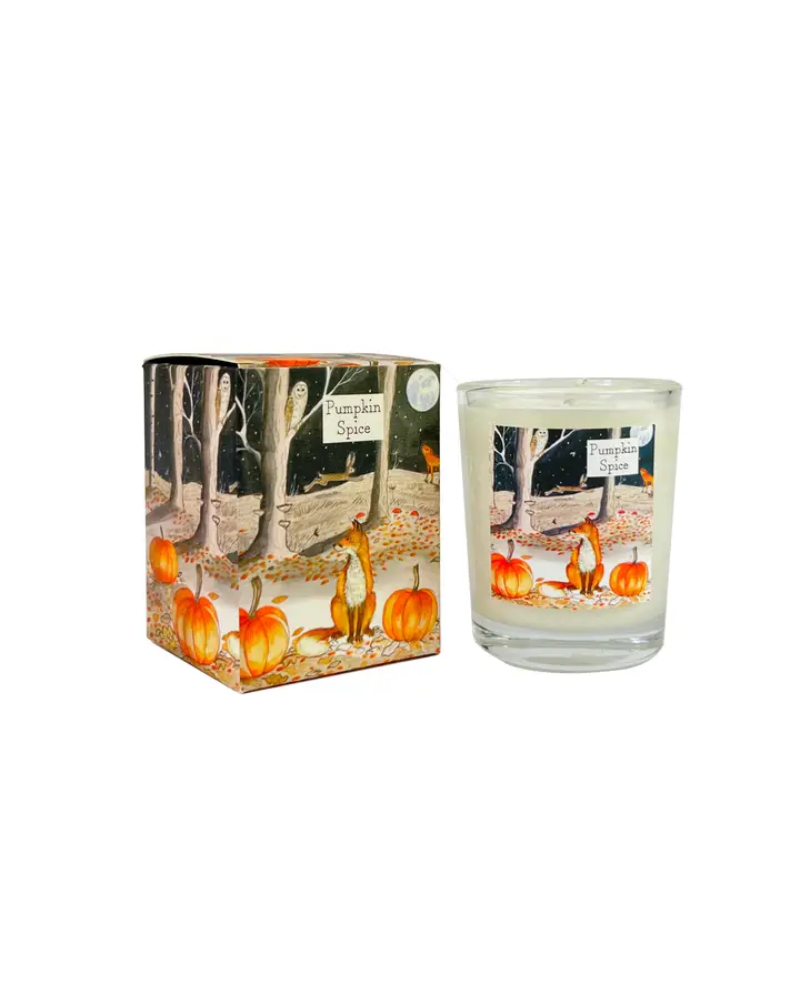Fox Pumpkin Spice Scented Illustrated Candle Wildlife Collection.