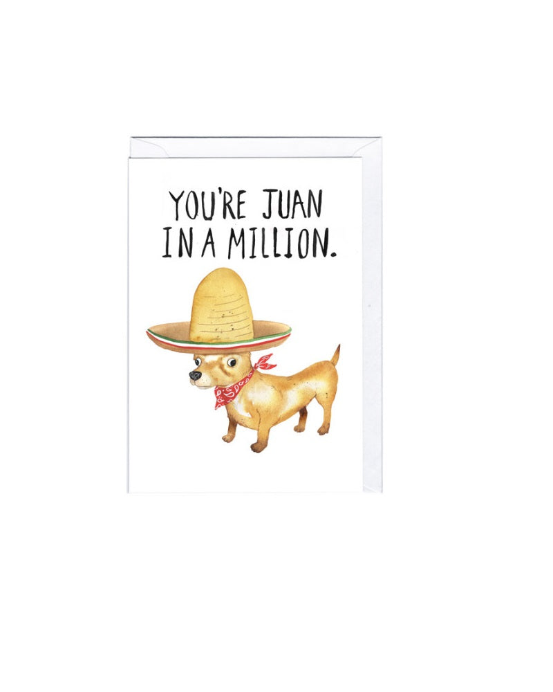 Juan in a million, one in a million, it's a chihuahua, chihuahuas are mexican, get it? Blank inside for your personal message.