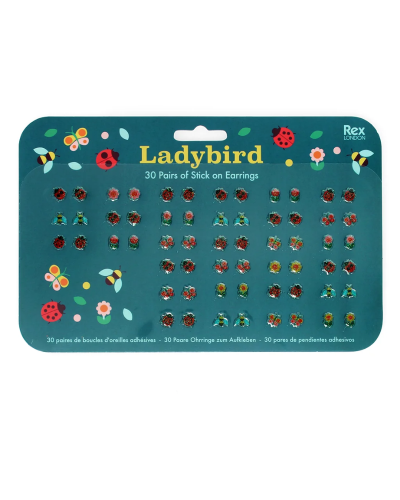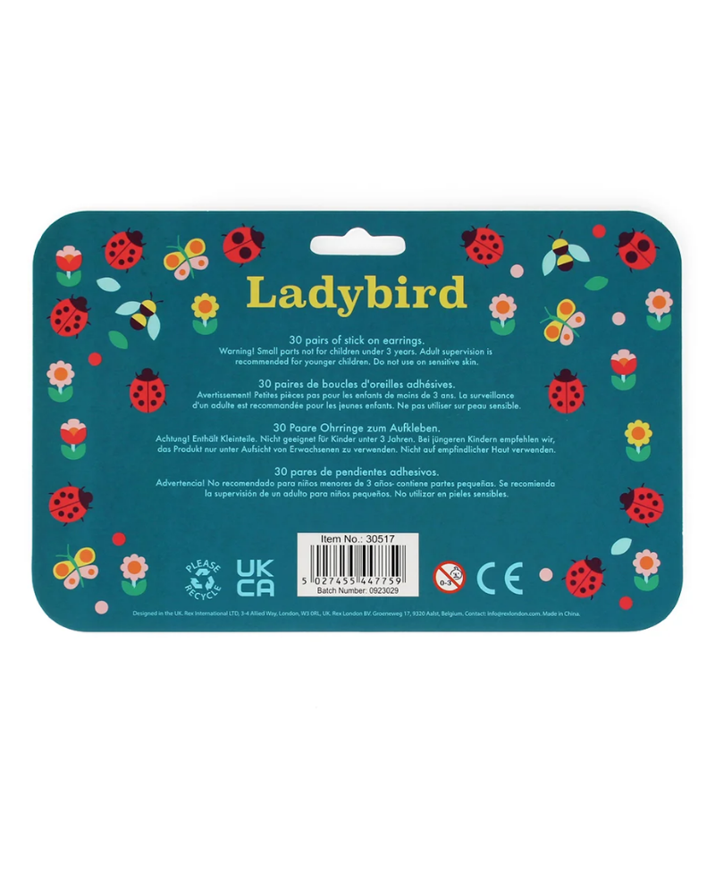 30 cute ladybirds for your little one's ears. Easy to apply stick-on earrings that will make your child look extra adorable! No piercing necessary, perfect for young children. Fly into style with this playful earring set! (Piercings not required, just ladybirds!)