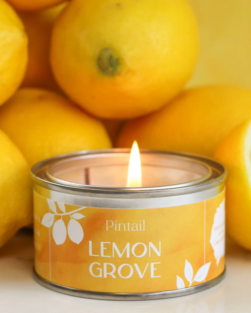 Lemon grove is a warm and fresh summer scent. Top notes of aldehylic and lemon burst from the candle, while a sweet, warm gourmand heart and a base of coconut and vanilla round out and balances the citrus to surround you with the fresh, soothing fragrance of citrus trees in bloom.