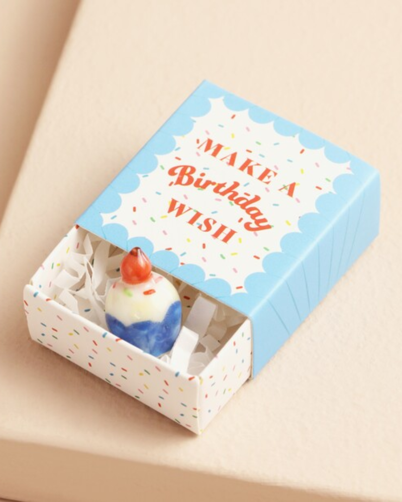 Make a Birthday Wish Cake Tiny Ceramic Matchbox Token