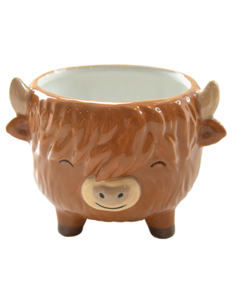 Moo-ve over boring plant pots, and add a touch of whimsy to your plant display with our Mini Highland Cow Planter on Legs! This playful planter features a cute highland cow design and is perfect for displaying small plants.