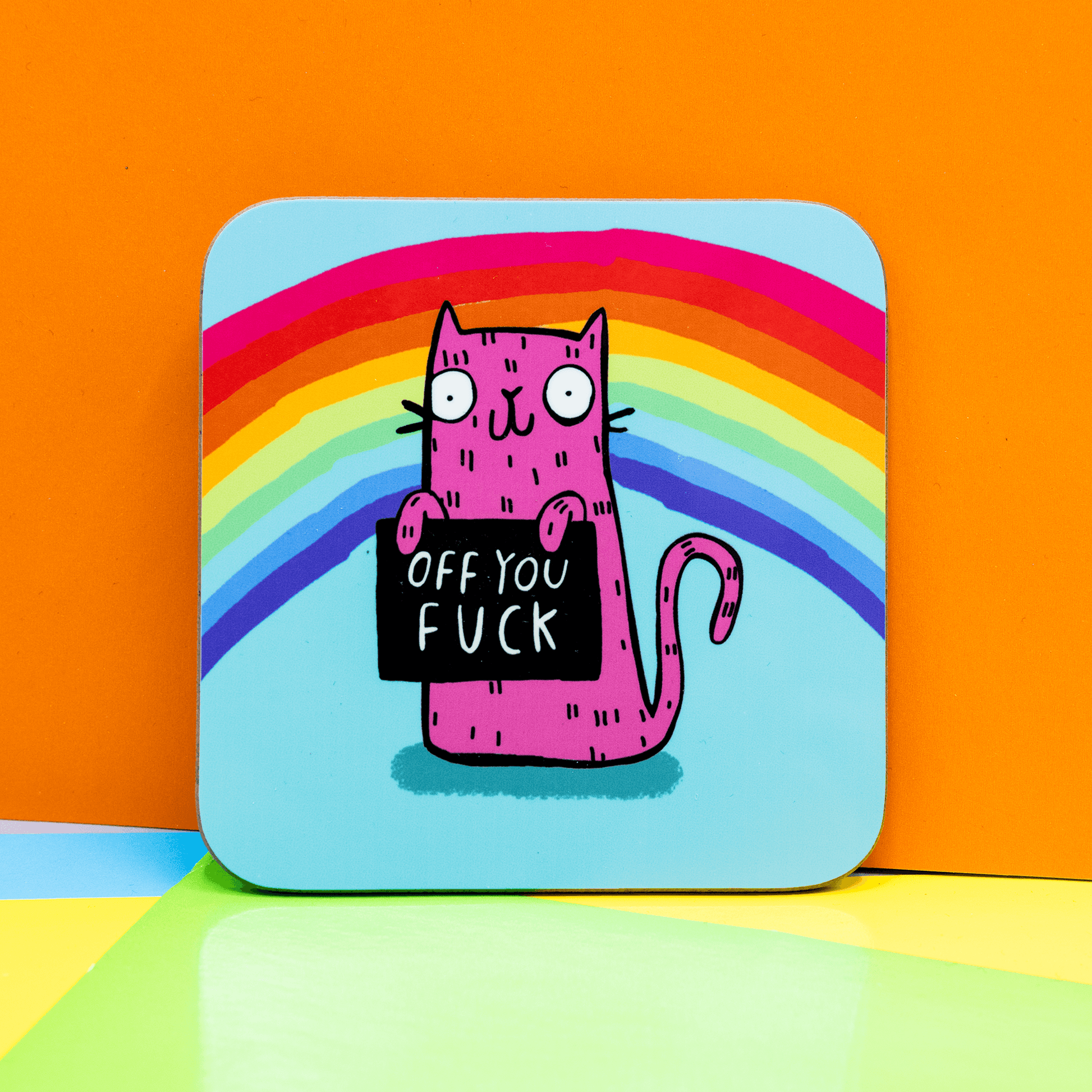 These cat-themed coasters are not your typical home decor. With the cheeky phrase "Off You F*" emblazoned on each one, they add a playful and edgy touch to any room. Protect your surfaces in style and show off your quirky sense of humour with these coasters.