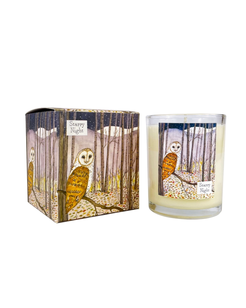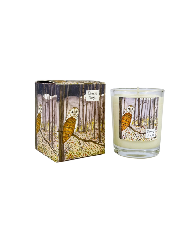 Owl Starry Night Scented Illustrated Candle Wildlife Collection.