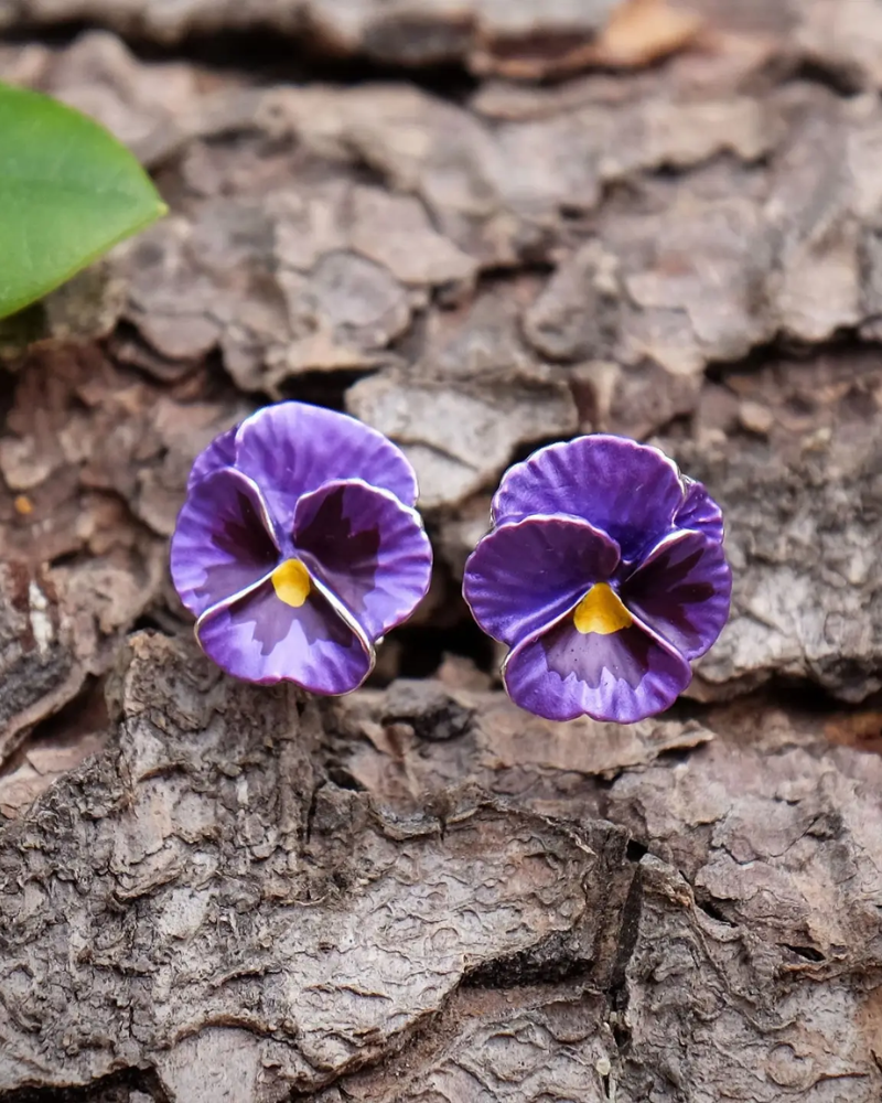 Pansy Flower Stud Earrings in Pink & Purple