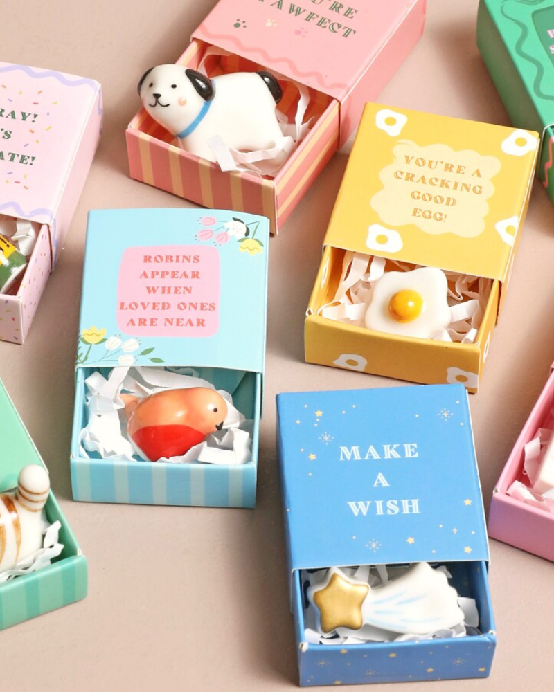 When you don't quite have the word, these sweet matchbox tokens are the perfect gift for a loved one. Each tiny matchbox contains are cute ceramic animal with matching sentiment.