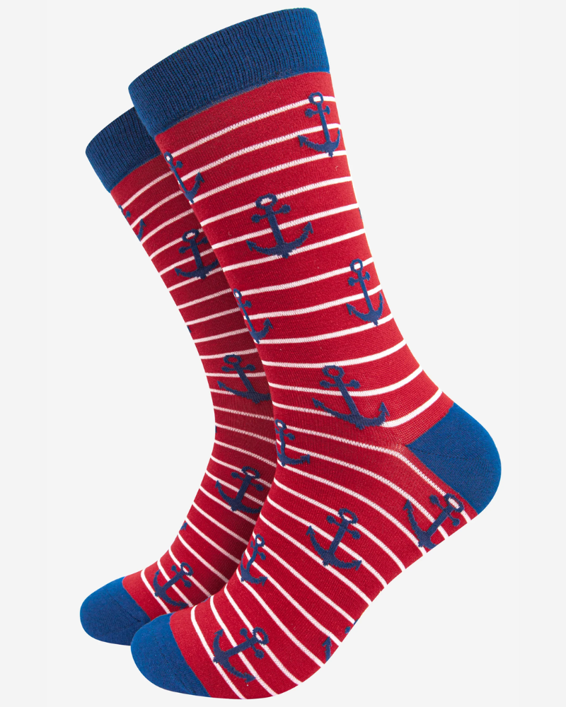 Red Stripe Anchor Bamboo Socks