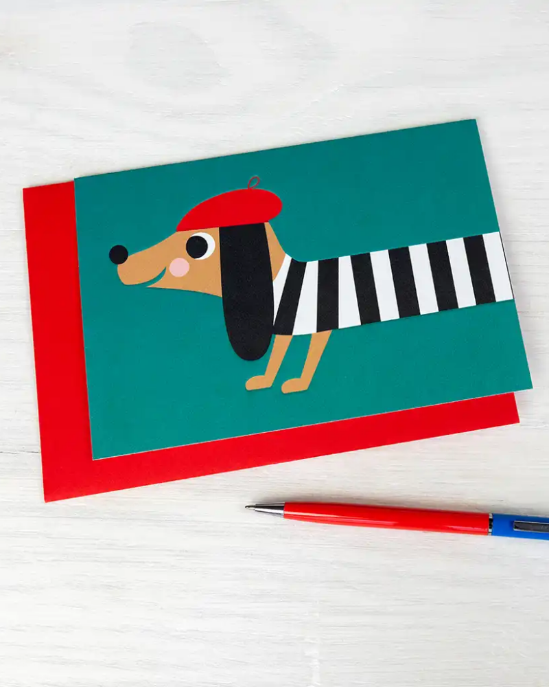 Looking for a doggone cute greeting card? This Sausage Dog Beret Greeting Card is pawfect for any occasion. With an adorable beret-wearing pup on the front, it's sure to bring a smile to everyones' face. Ooh La La!