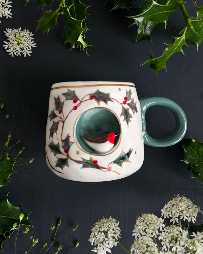 Rock your mornings with the Secret Garden Robin Cup. Set yourself up for a brew-tiful winter's day with this beautiful mug. With a 3D Porcelain robin nestled in a nook, you'll always have a loved one close to your heart.