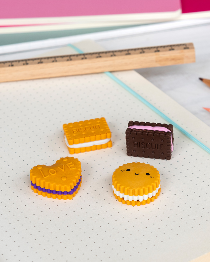 Add a tasty twist to your stationery with this set of 4 Mini British Biscuit Erasers. Perfectly sized for little hands or desk drawers, these fun erasers bring a playful charm inspired by classic British biscuits. Erase mistakes with a smile while adding a quirky touch to your school or office supplies. A delightful treat for anyone who loves snacks and stationery combined!