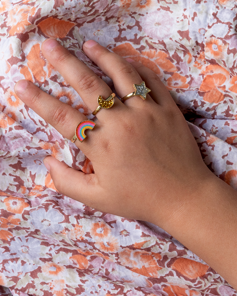 Star, Rainbow & Moon Glitter Rings (Set of 3)