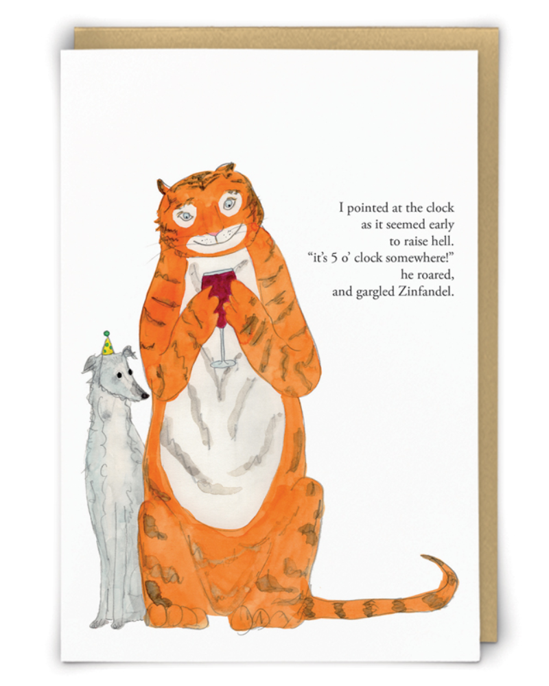 Celebrate that special 'wine connoisseur' in your life with this tiger-ific card. The Tiger & Dog Wine Greeting Card will have your loved ones roaring with laughter on their special day.