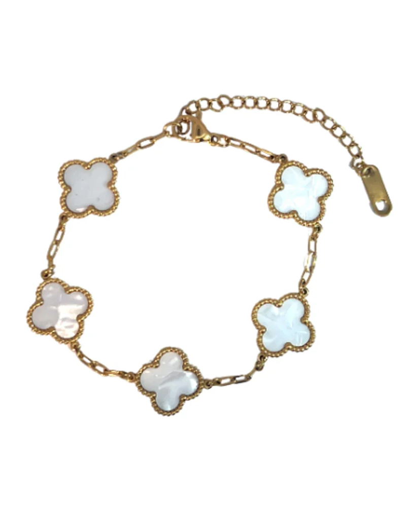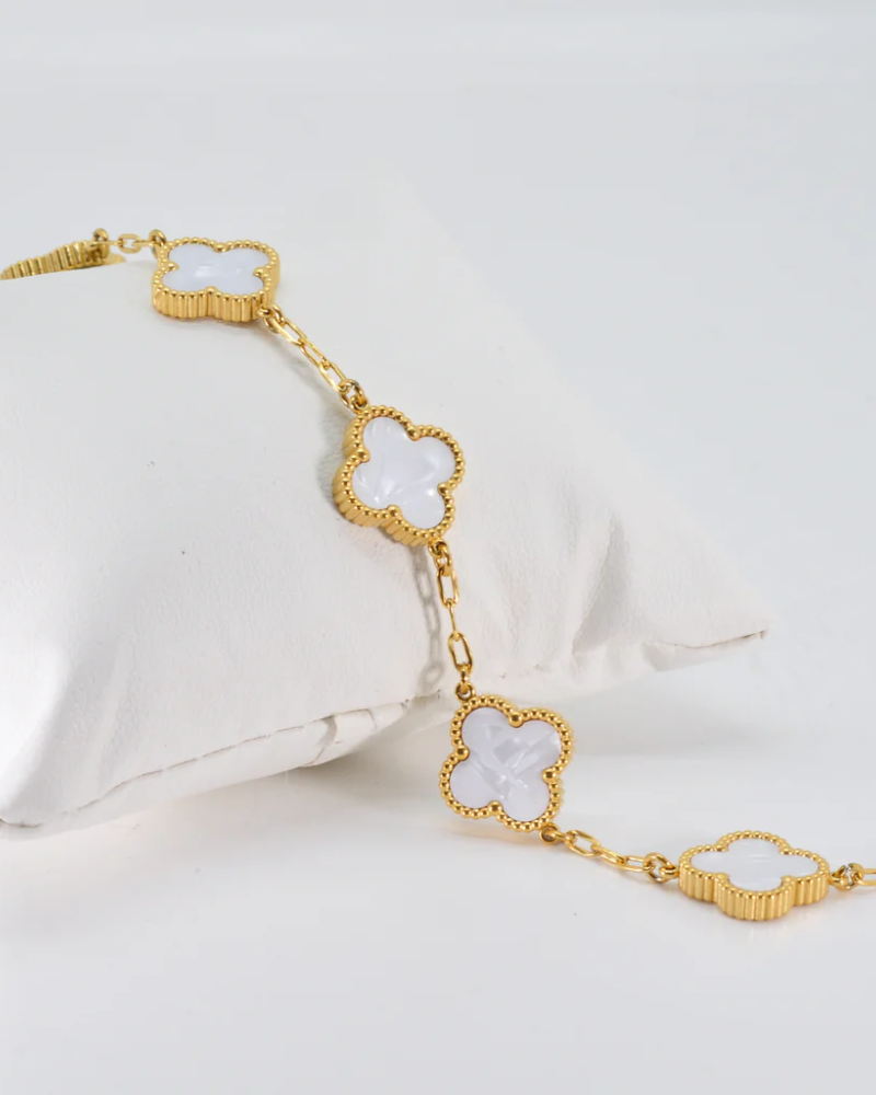 White Four Leaf Clover Bracelet 18K Gold Plated