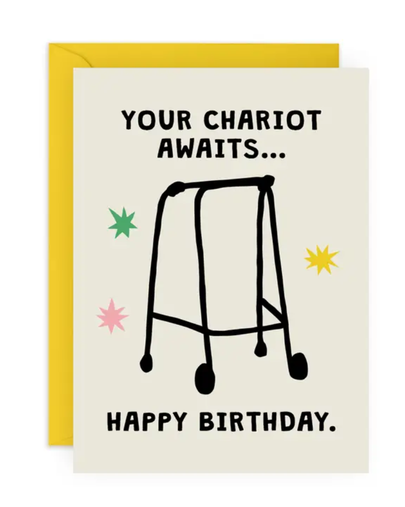 Humble your loved ones on their upcoming birthday with their upcoming zimmer frame threat! Perfect for mums, dads and anyone else who isn't allowed to disown you all that easily!