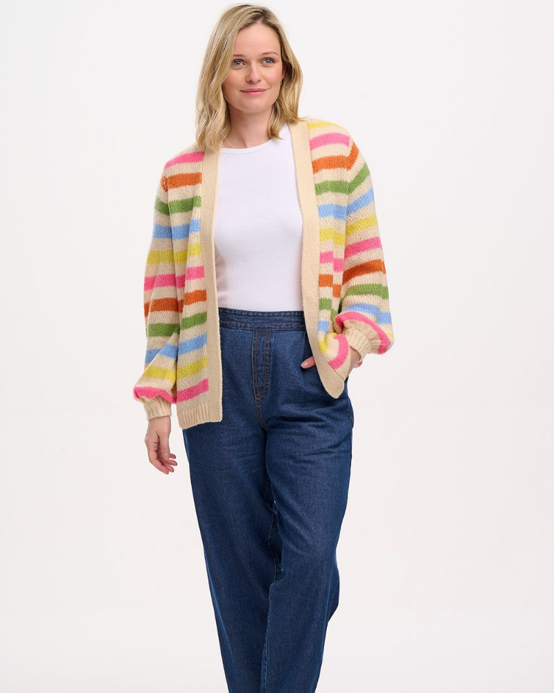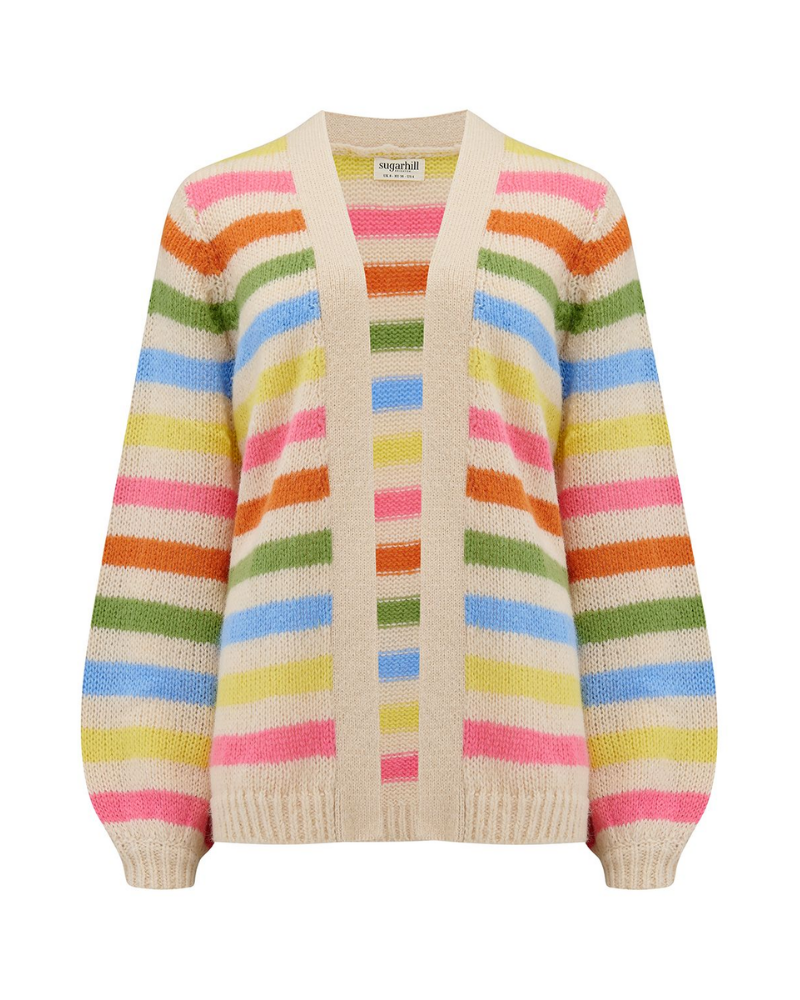 Yvette Rainbow Stripes Pastel Cardigan By Sugarhill Brighton.