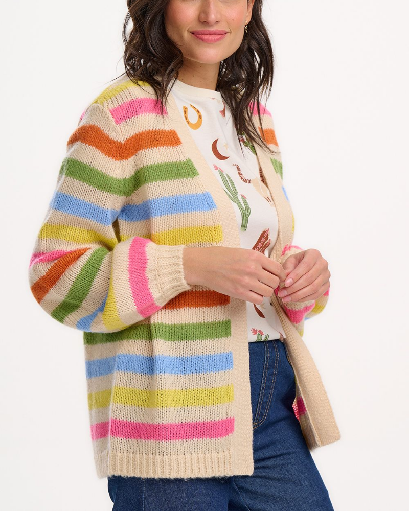Yvette Rainbow Stripes Pastel Cardigan By Sugarhill Brighton
